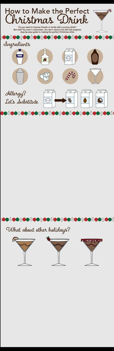 “How to Make the Perfect Christmas Drink” Pinterest infographic project is a fun and festive guide designed to help beginners craft the perfect “Chocolate Peppermint Martini,” a seasonal holiday drink ideal for Christmas gatherings. The infographic breaks down the steps in a simple and engaging format, making it easy for anyone to follow—even without bartender experience.
